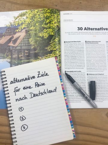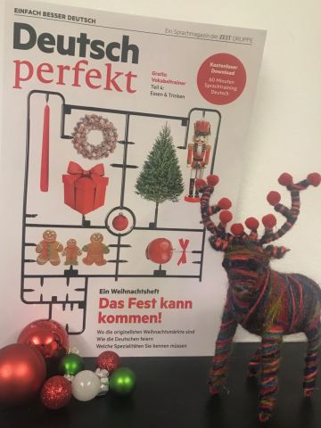We love Deutsch Perfekt for its really relevant topics and great (photo) journalism made accessible for learners of German from A2 onwards. The core is the main magazine, which is available in print or digital. You can also download an app on your tablet or mobile. Articles are graded at 3 different levels, but with the help of a handy glossary we find that students often proudly manage articles pitched above their level. Some articles are just a five minutes read, others continue over several pages. Topics include anything you can imagine, all in relation to German speaking countries: current affairs, politics, work, travel, books, cinema and above all… people. You will read/hear the voices of ordinary and sometimes famous people. One of my favourite regular columns (level A2 onwards) is called Mein erstes Jahr. People from all over the world now living in a German speaking country tell the reader about their first year experience. Several pages of the magazine deal with selected Grammar and vocab topics, always in context to real life situations. It also includes a German-English vocab list. The main magazine is often accompanied by a mini magazine, See for example above the mini magazine 100 Wörter Liebe included in the February edition for Valentine's day. For those of you with lots of time there is an Übungsheft (at an extra charge) for extra practice. I think it’s good, but most of our students are busy enough with the main magazine which also contains some exercises. What we wholeheartedly DO recommend though is the audio trainer which is based in some of the articles in the magazine. Students have the chance to listen to real life conversations in (slow) German and new vocab is introduced orally. The Christmas (gift) edition is good value as it offers a one year subscription with 6 months free audio trainer for €110,60.