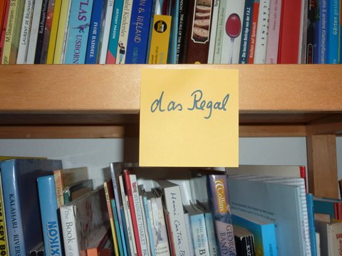 Would you like to learn lots of new German vocab just by being at home, effortlessly 5-10 everyday? All you need is a pen and some post-its in different colours. I used blue for DER, pink for DIE and yellow for DAS. Stick them around your flat.